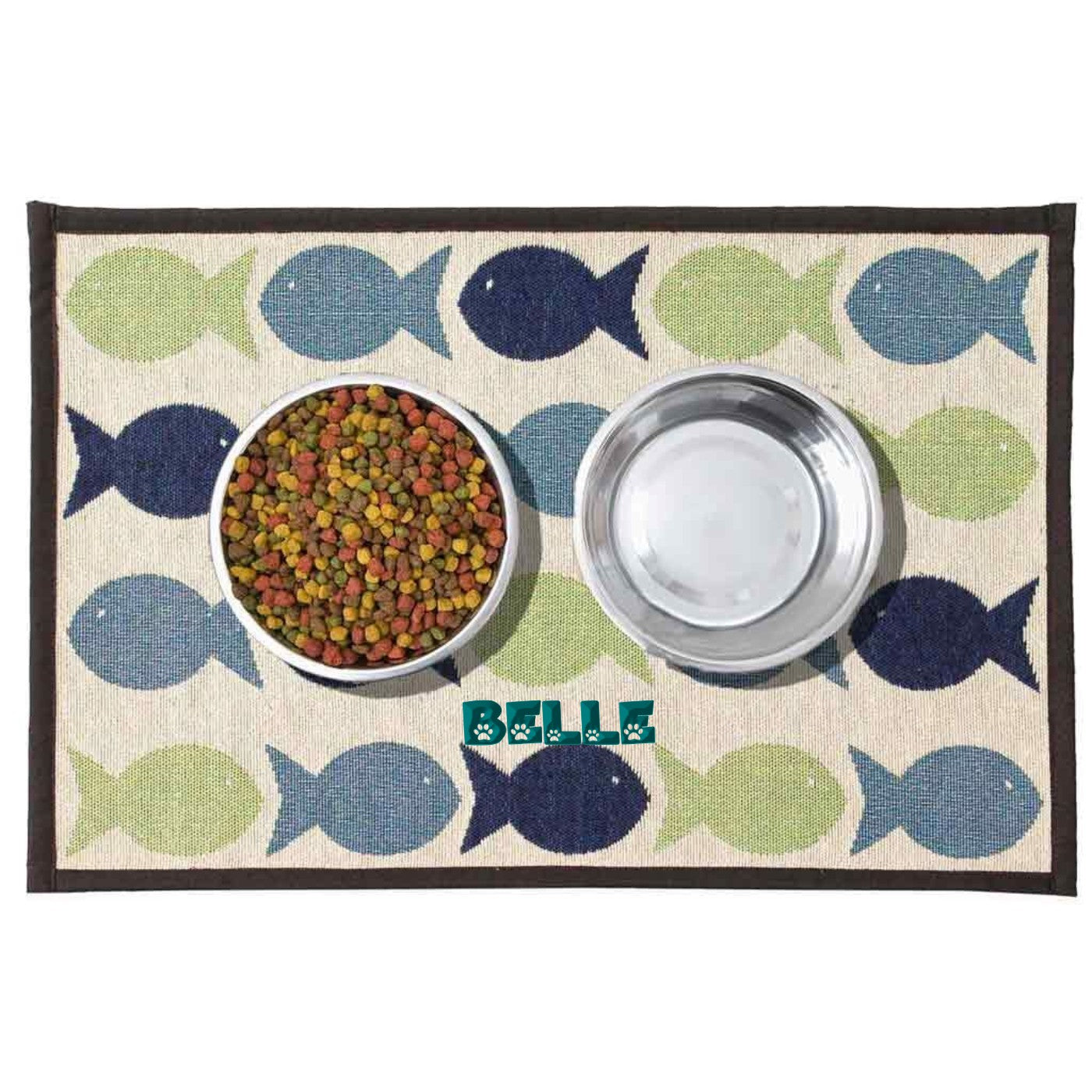Your best friend deserves a nice clean area for his favorite meals. Our Personalized Tapestry Cat Food Mat is the best gift for your favorite companion. It features a rubber non-skid back so mat stays in place while your little guy eats. Works great on wood or tile floors. Your personalized mat will make clean up a cinch. Dibsies will personalize your mat FOR FREE up to 12 letters maximum.