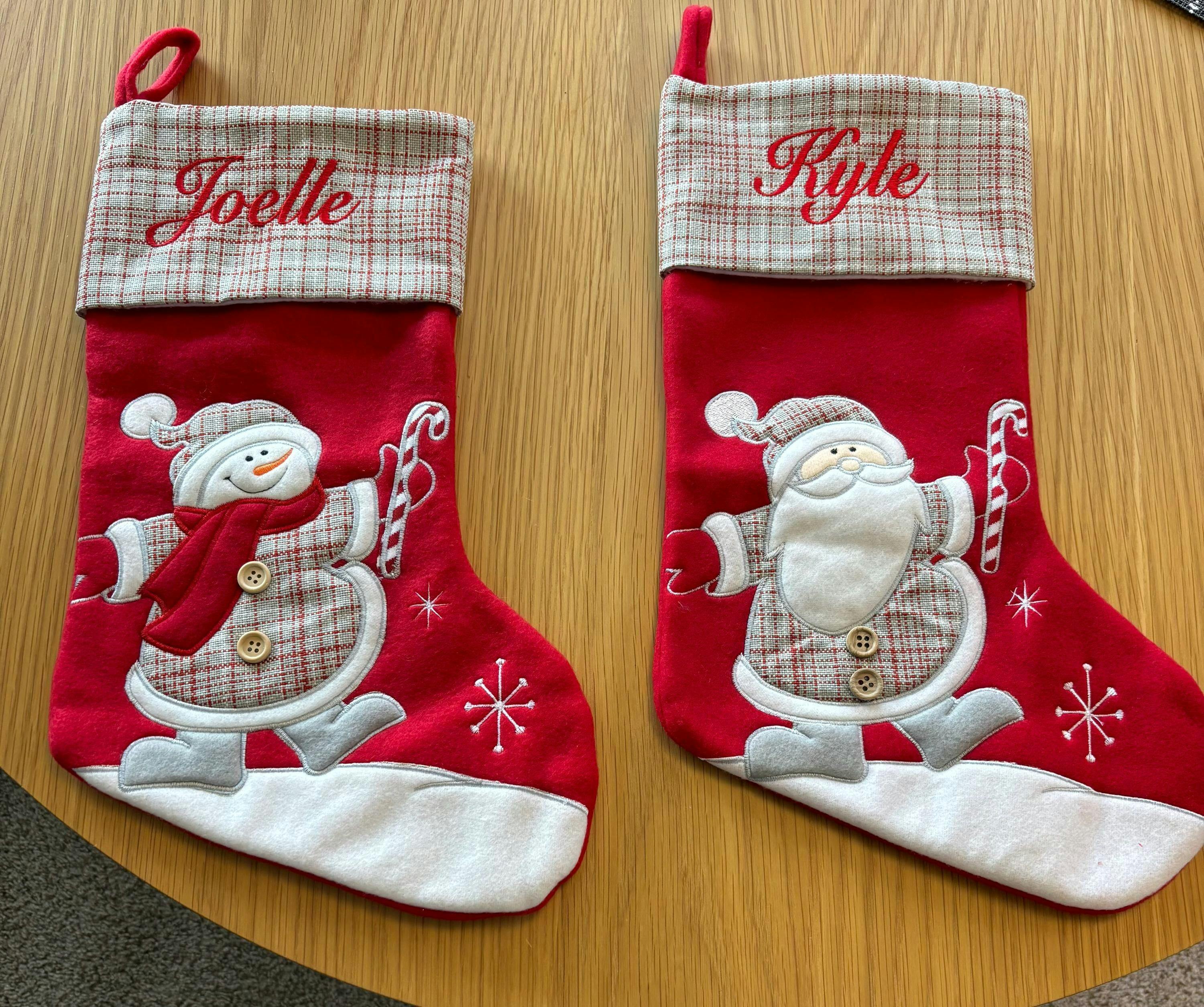 Warm colors bring warm thoughts of the holidays in our new Plaid Stocking Collection. When it's cold outside and you just want to bundle up, you know that Christmas is coming and it's time to get the gifts ready. Our Personalized Plaid Stockings are adorned with appliques of your favorite holiday characters. It will fit most of what is on his/her Christmas list. Great for Mom and Dad, Grandpa and Grandma and your favorite Little Boy or Girl. Christmas will be jolly with this fun and adorable stocking.