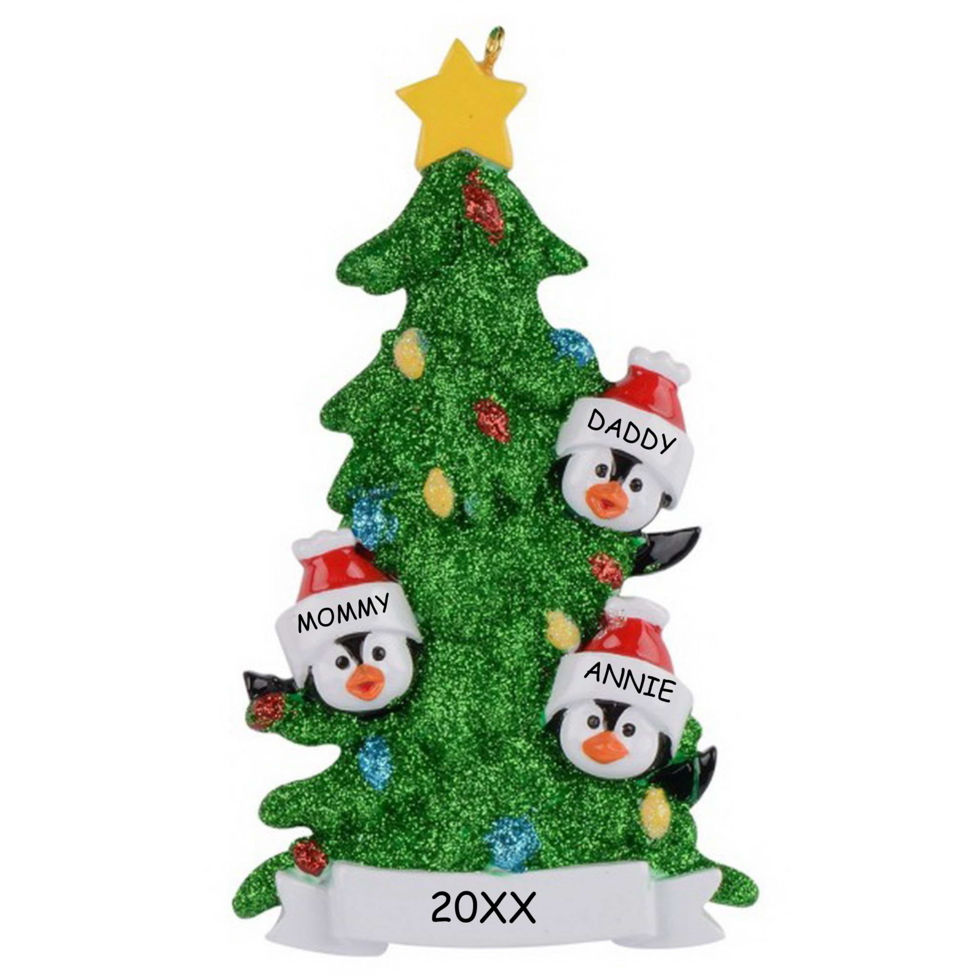 Personalized Penguin Christmas Family Ornament - Family of 3