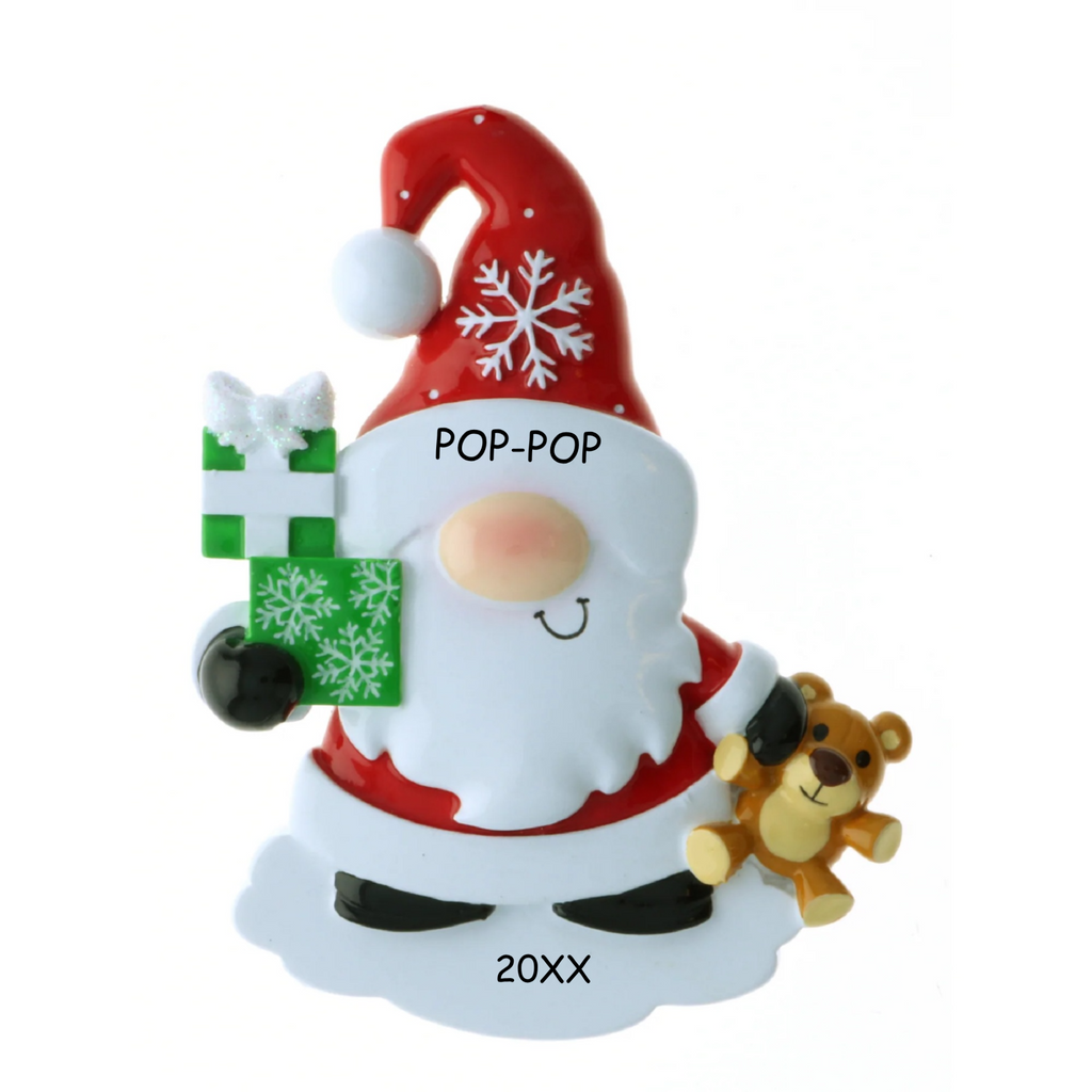 Ho, Ho, Ho...!!! It's a Jolly Christmas with our Personalized Gnome Santa Christmas Ornament. His bright red hat and suit will light up your Christmas Tree and put smiles on everyone's face. Gift the family with a personalized ornament this Holiday Season. It is a keepsake for your special one that will last a long time. Celebrate the Holidays, with a Personalized Ornament. Dibsies will add your name up to 9 Letters Max.