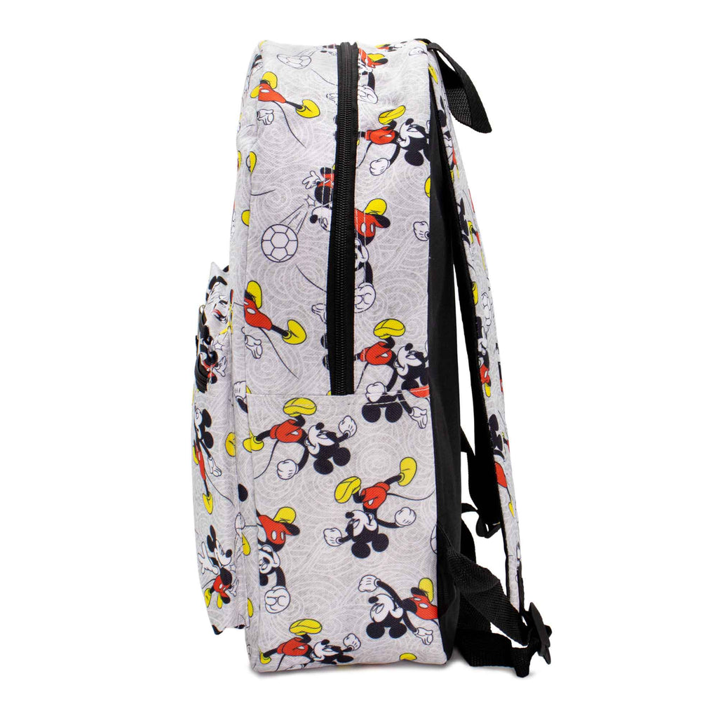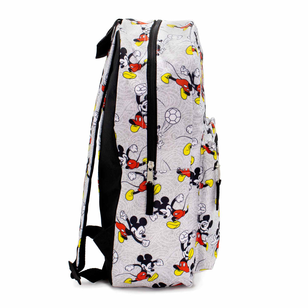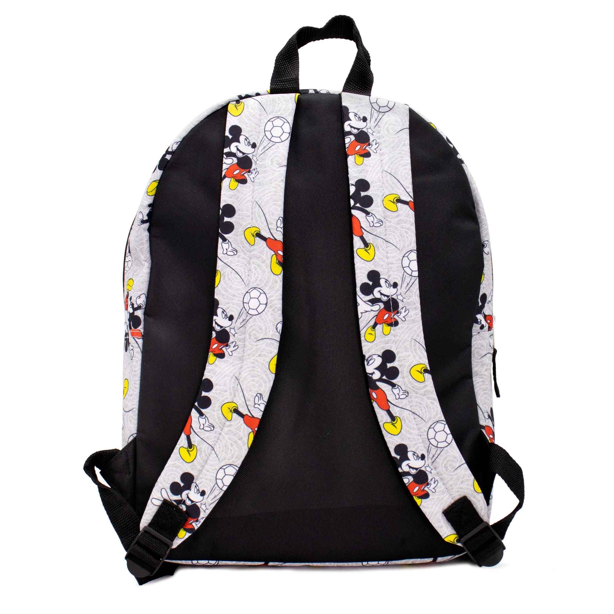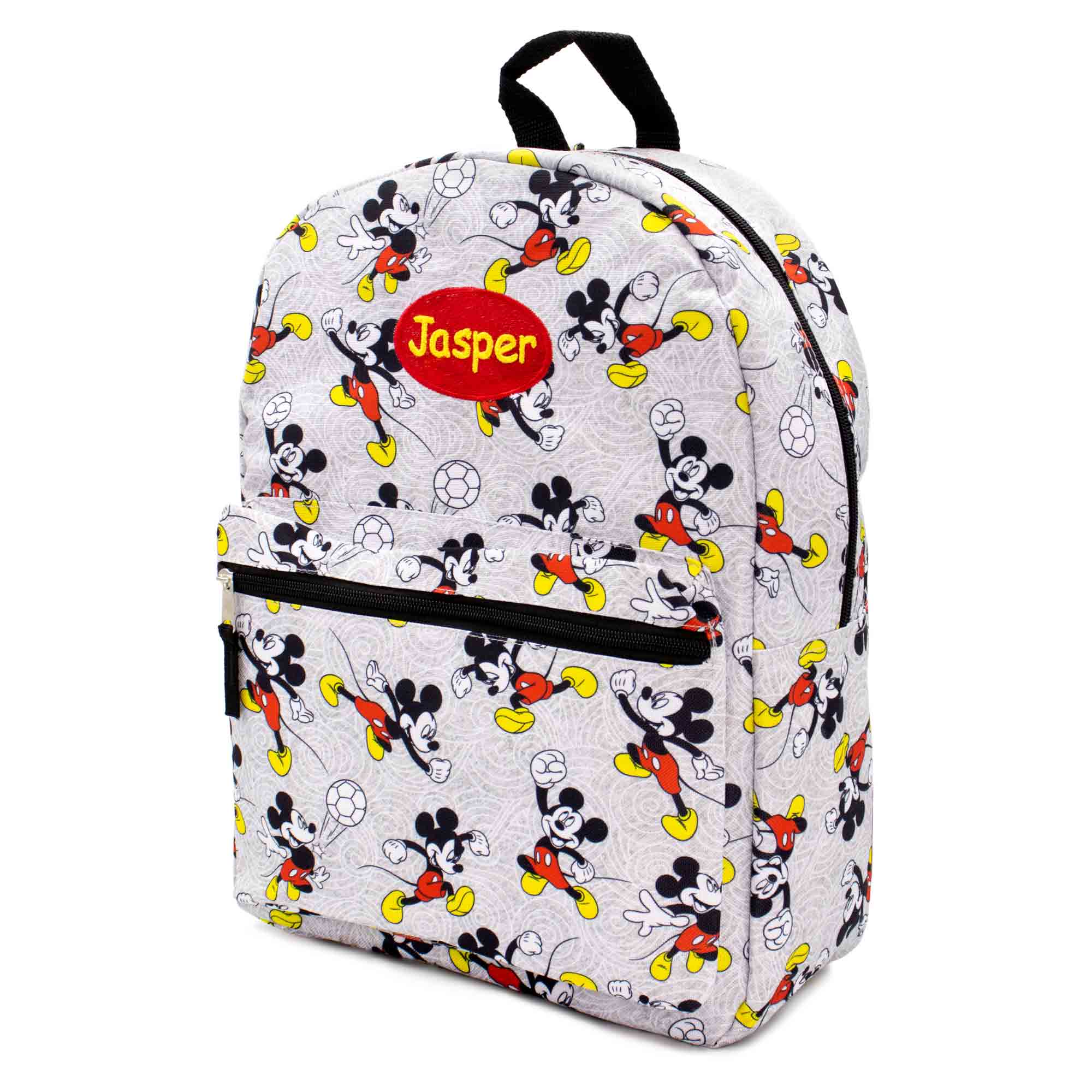- This Personalized Backpack Features Mickey Mouse in an all over print. Made with a high quality and durable polyester canvas material.