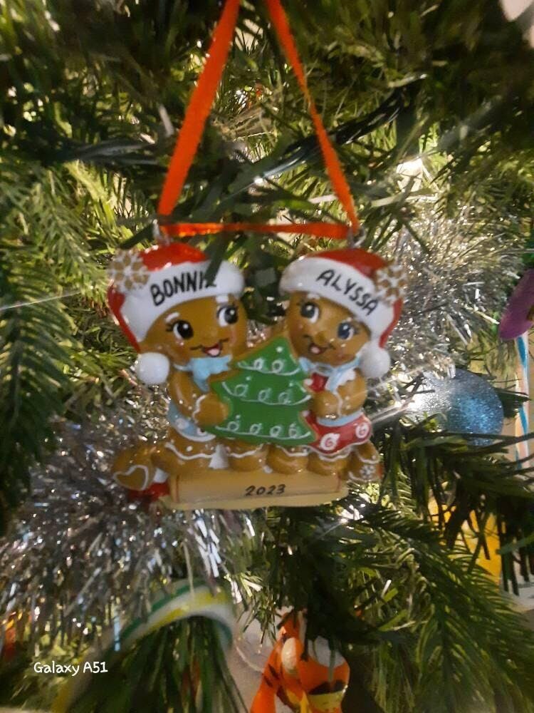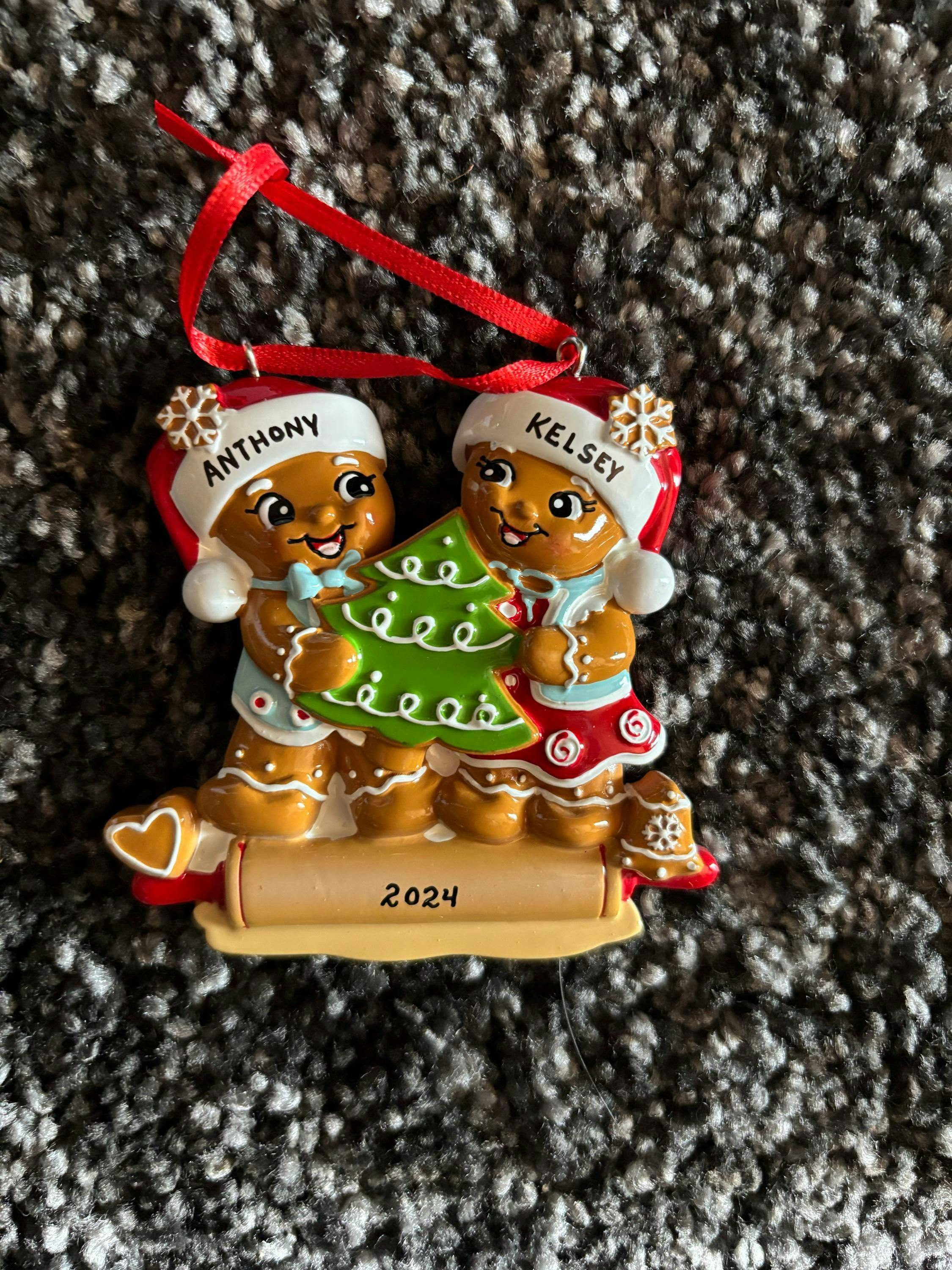 Our Gingerbread Family Ornament is a perfectly fun addition to your Christmas Tree. Baked in cookie-like colors with your individual names on each gingerbread making this ornament extra special. This is a great addition to the memorable ornaments that you have kept all this years. A keepsake that will be cherished and remembered for a long time. Dibsies will add any name up to 9 Letters Max.