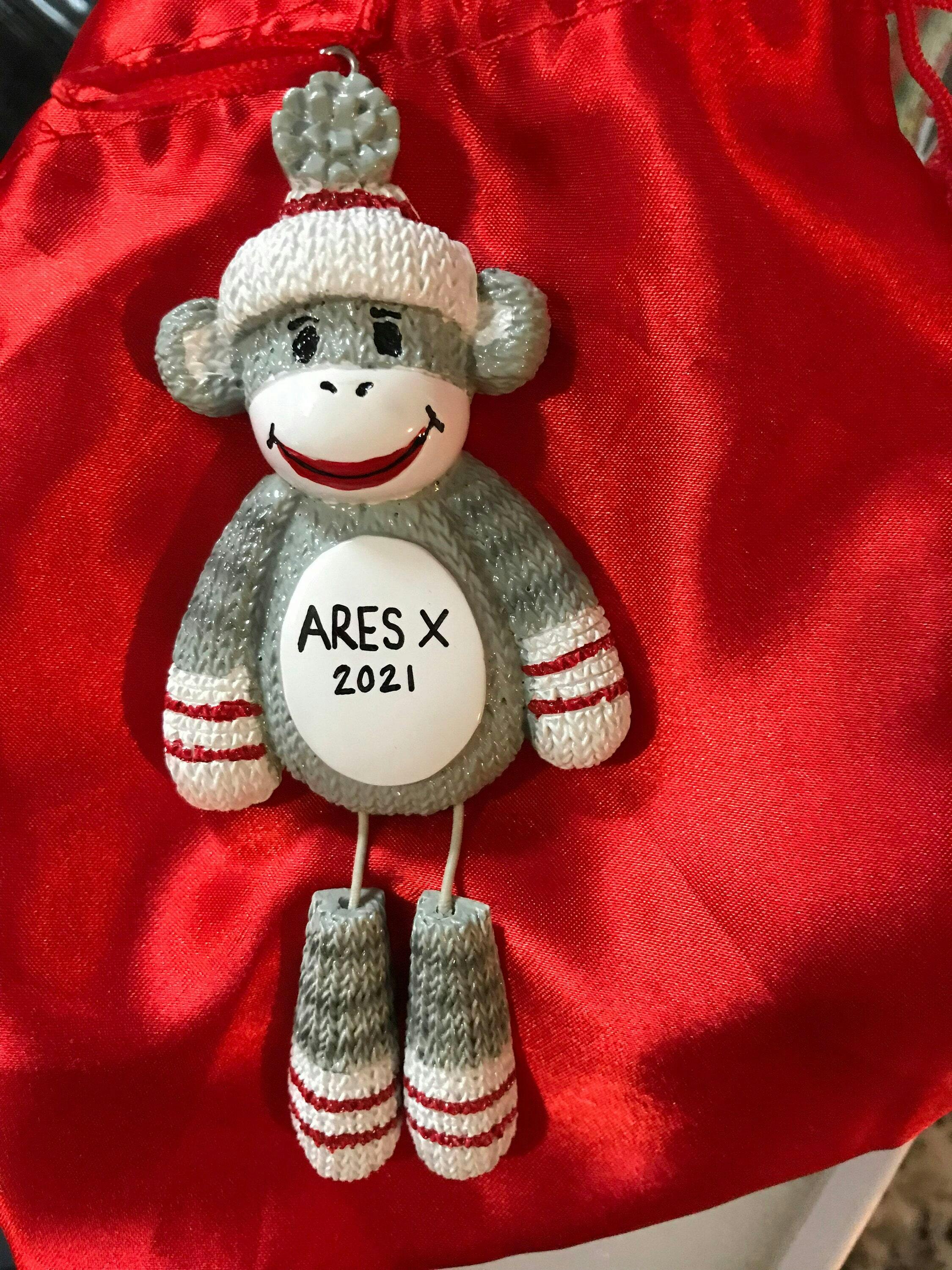 We have the perfect Christmas ornament for your fun-loving and huggable little one. Our Personalized Sock Monkey Kids Ornament is too cute you can't resist it. This Holiday season, gift your favorite little girl or little boy in the family with a Personalized Christmas Ornament. It is a keepsake for your little one that will last a long time. Celebrate the Holidays, with a Personalized Ornament. Dibsies will add any name FOR FREE up to 9 Letters Max.