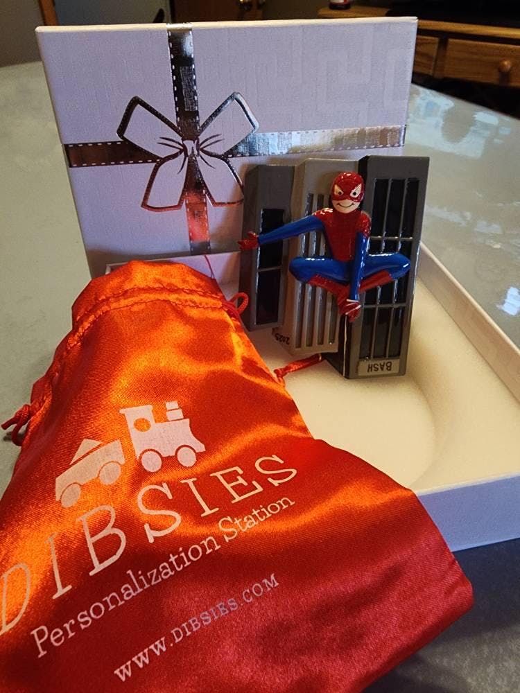 Does your little boy like Spiderman? Are comic books his thing? Our personalized Superhero ornament is the perfect one for your adventurous little boy. High flying and colorful, our superhero will make the ornament a stand out on your tree.This Holiday season, gift your favorite little boy in the family with a Personalized Christmas Ornament. It is a keepsake for your little one that will last a long time. Celebrate the Holidays, with a Personalized Ornament. Dibsies will add any name up to 9 Letters Max.