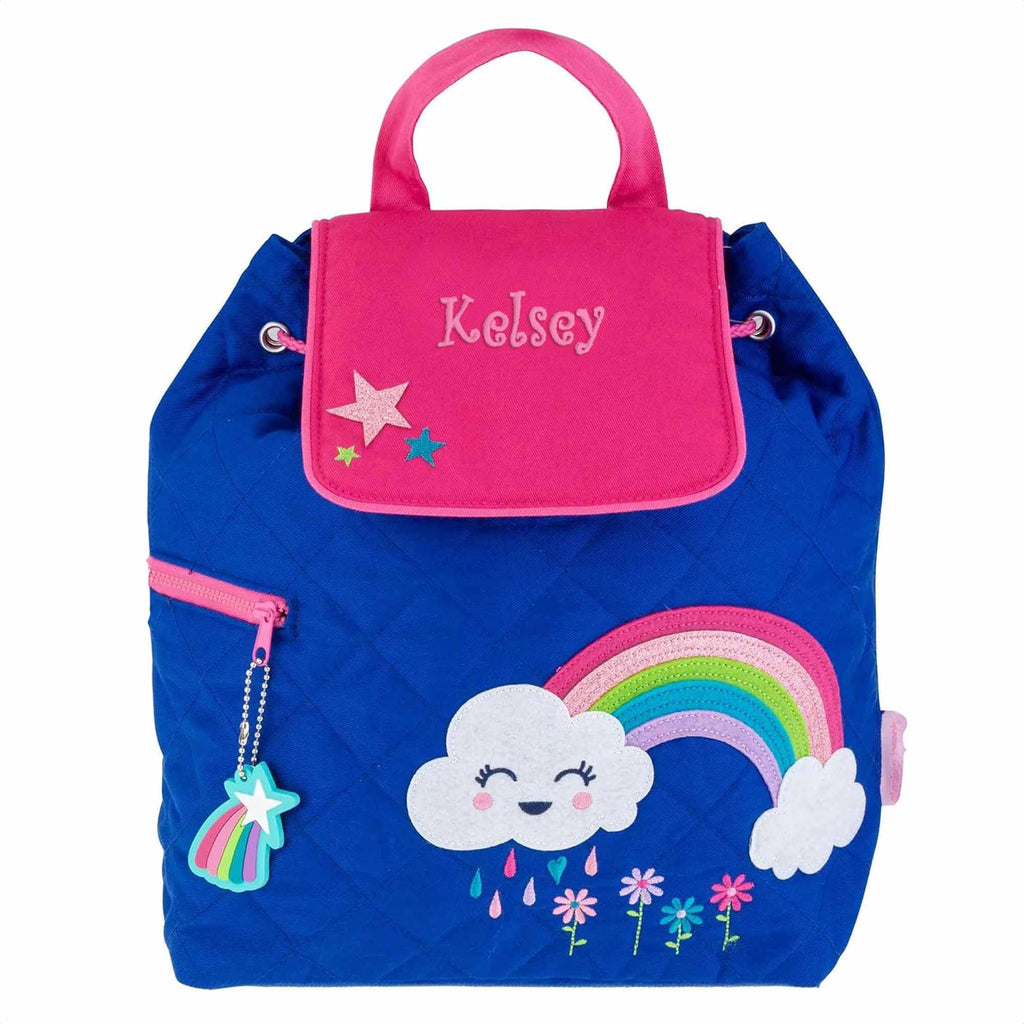 Brighten up your child's day with our Rainbow and Smiling Cloud Backpack! This delightful and whimsical backpack is perfect for young dreamers who love colorful and cheerful designs. The quilted design is highlighted with an applique of a smiling cloud and a beautiful rainbow. Great for sleep-overs with Grandma or for a play date.