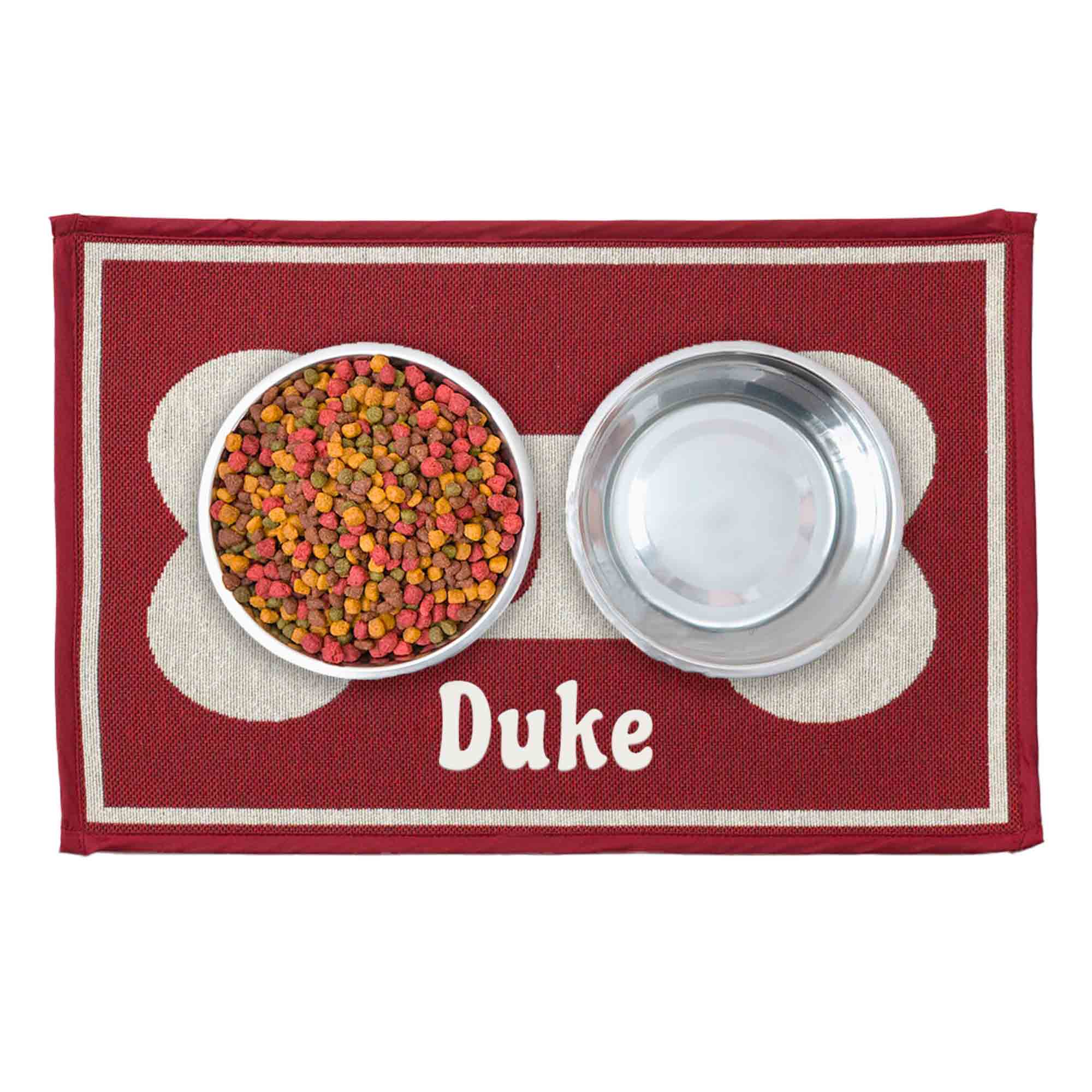 Your best friend deserves a nice clean area for his favorite meals. Our Personalized Tapestry Dog Food Mat is the best gift for your favorite companion. It features a rubber non-skid back so mat stays in place while your little guy eats. Works great on wood or tile floors. Your personalized mat will make clean up a cinch. Dibsies will personalize your mat up to 12 letters maximum.