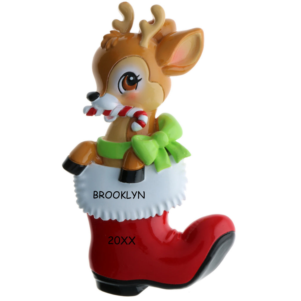 Personalized Baby Reindeer in Boot Christmas Ornament