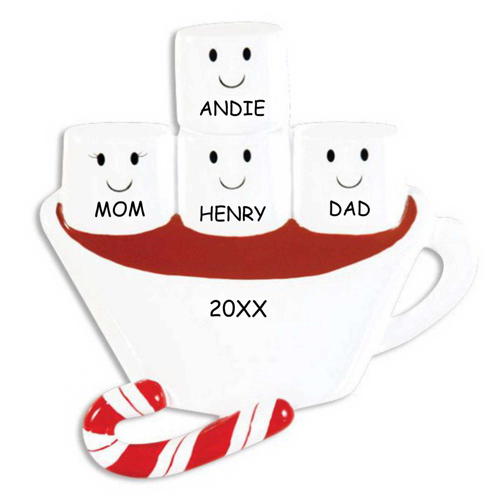 What a perfect combination to warm up the holidays. It's time to celebrate family and decorate the tree with your very own Christmas ornament. Sweet and cuddly as every member of the family, so is our Hot Chocolate and Marshmallow Family Christmas Ornament. It is a great addition to the memorable ornaments that you have kept all this years. This keepsake will be cherished and remembered for a long time. Dibsies will add any name FOR FREE up to 9 Letters Max.