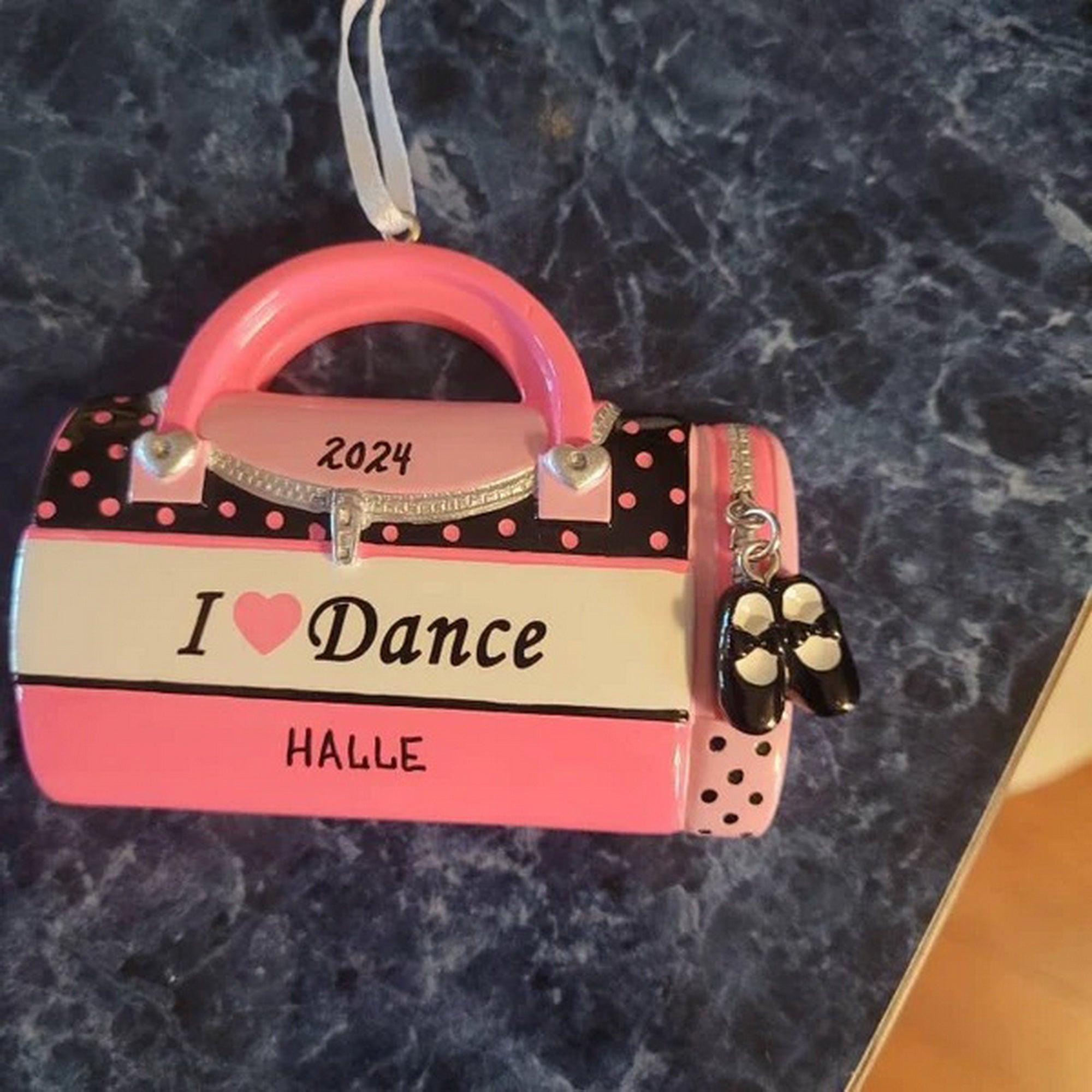 Her high kicks are perfect. Her moves make the team win. Our I Love Dance Christmas Ornament is just the right one for your favorite girl. This Holiday season, gift your Dancing Princess with a Personalized Christmas Ornament. It is a keepsake for everyone that will last a long time. Celebrate the Holidays, with a Personalized Ornament. Dibsies will add any name FOR FREE up to 9 Letters Max.