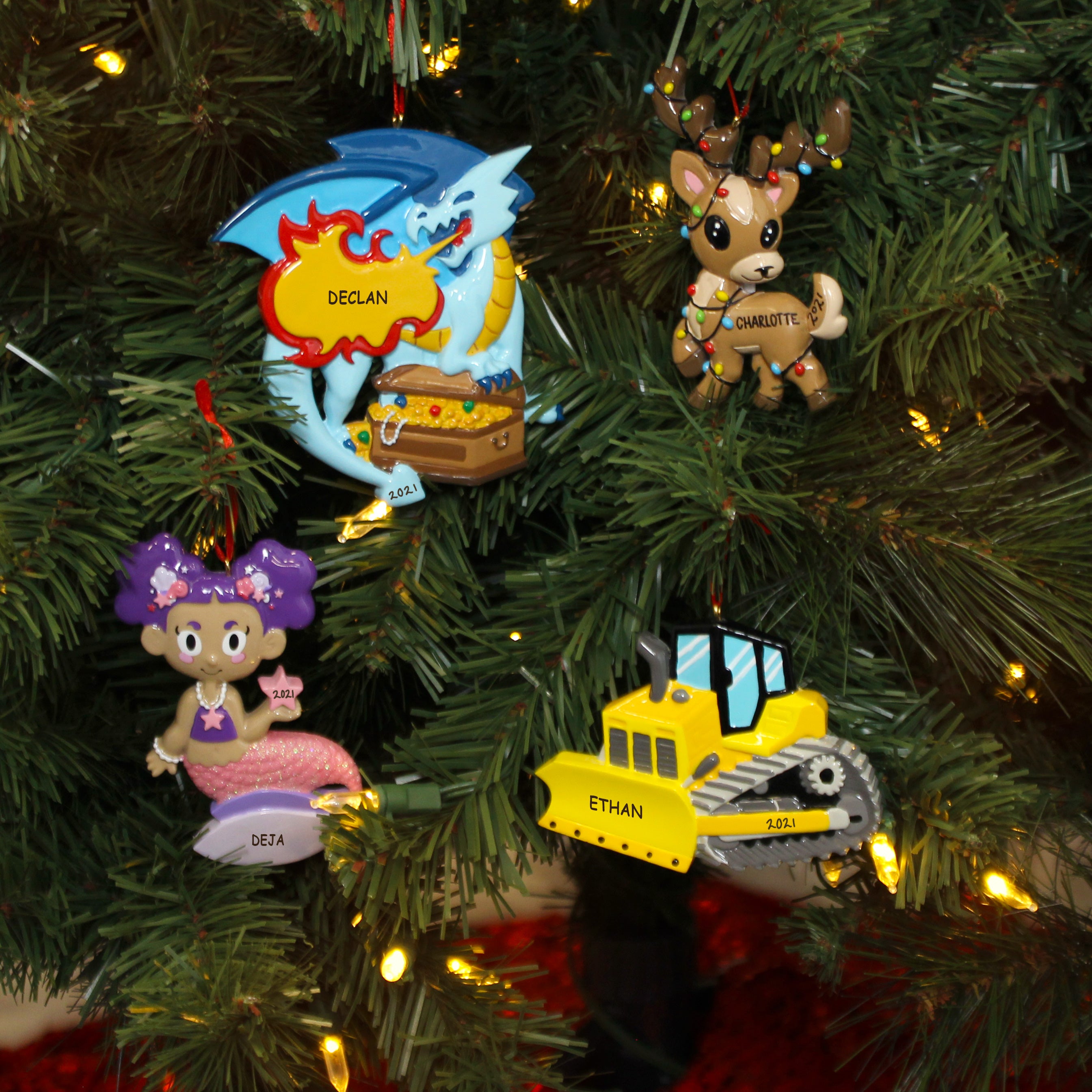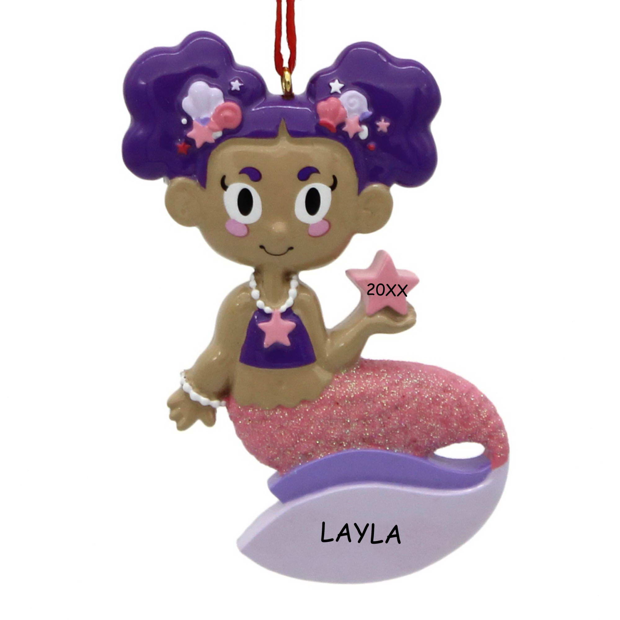 Make all of her mermaid dreams come true this Christmas with her Personalized Mermaid Ornament. Our design is highlighted with purple locks of curly hair, pearls and a beautiful star shell. This Holiday season, gift your favorite little girl in the family with a Personalized Christmas Ornament. It is a keepsake for your little one that will last a long time. Celebrate the Holidays, with a Personalized Ornament. Dibsies will add any name up to 9 Letters Max.