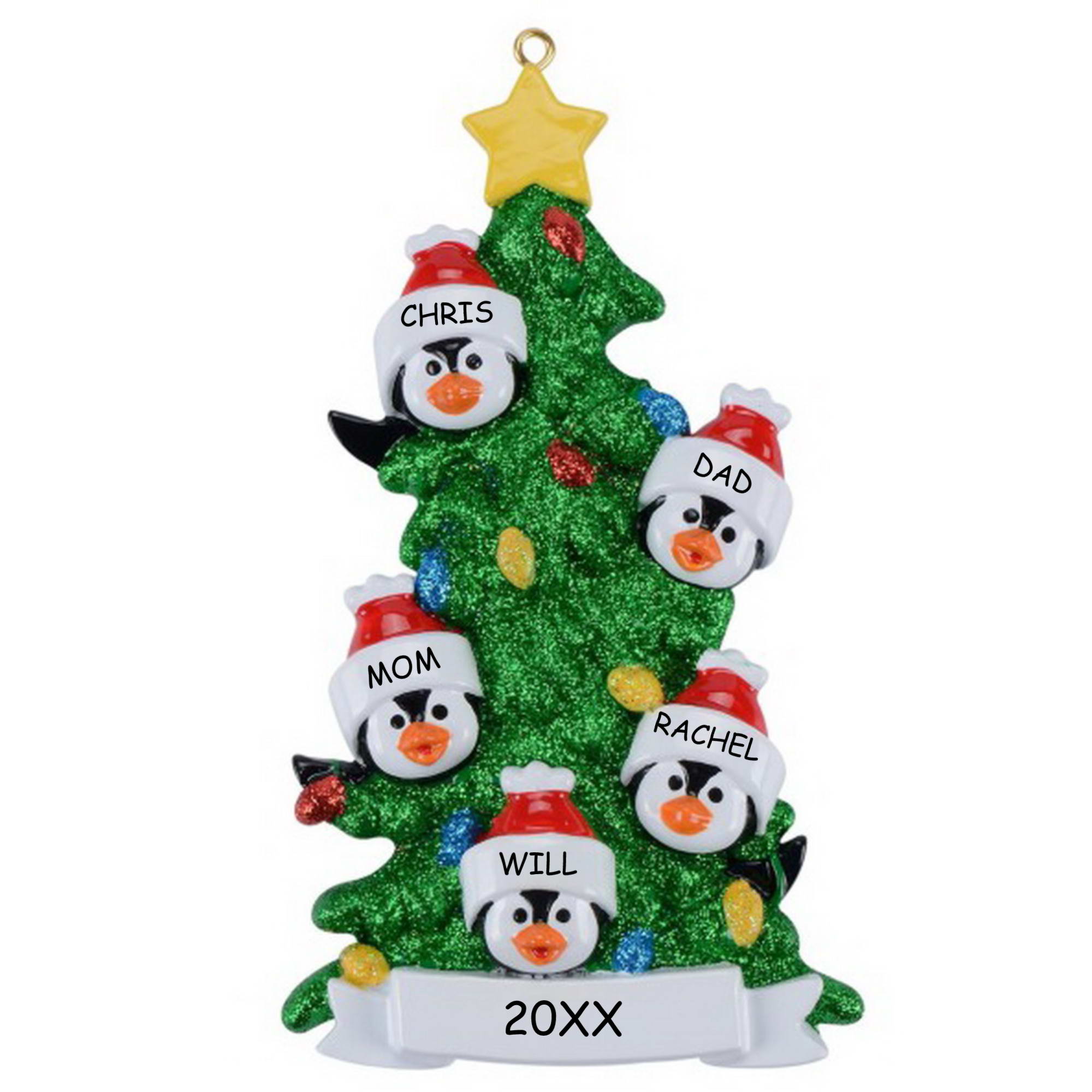 Personalized Penguin Christmas Family Ornament - Family of 5