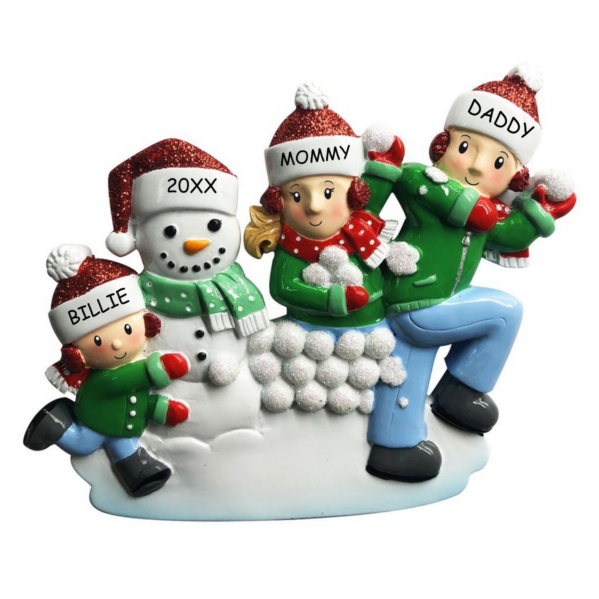Personalized Snowball Fun Family Christmas Ornament - Family of 3